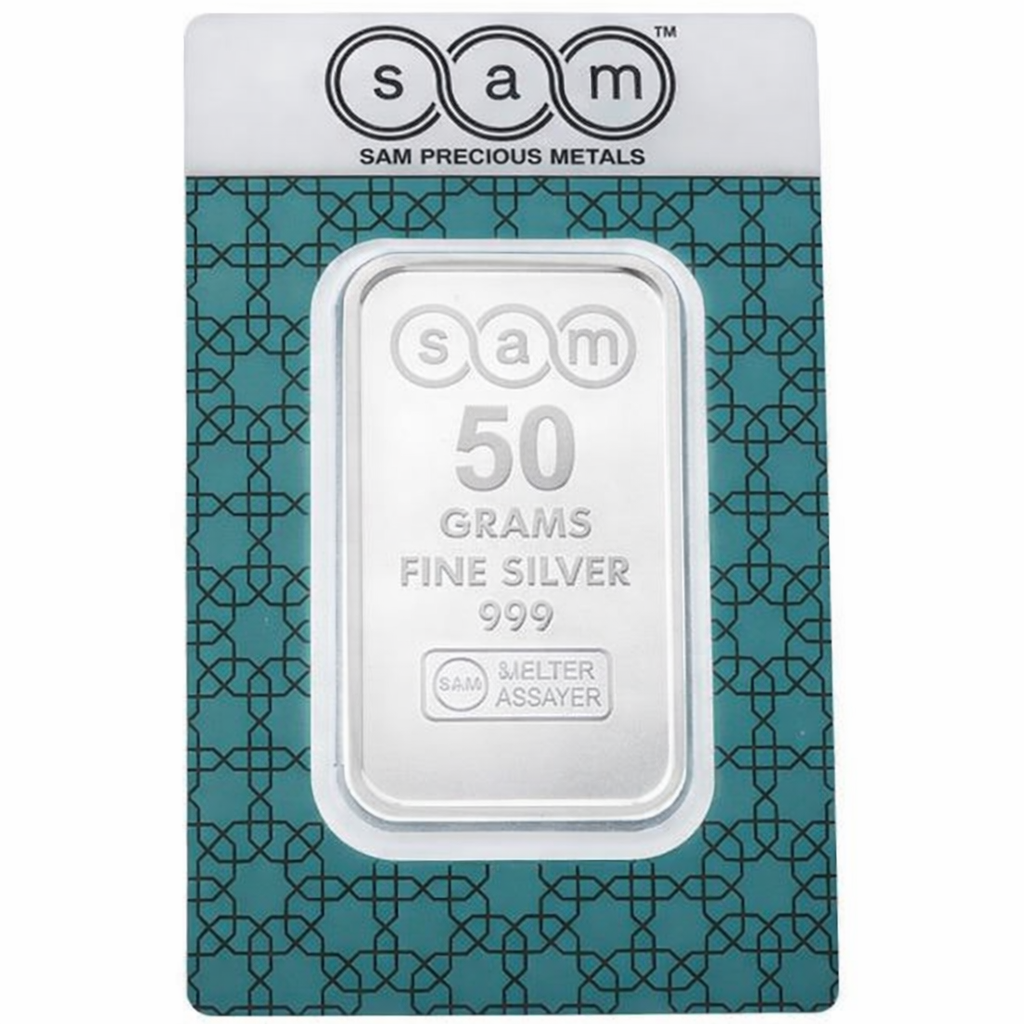 استثمر بثقة مع سبيكة الفضة وزن 50 جرام من إنتاج شركة SAM Precious Metals إحدى الشركات الموثوقة في مجال المعادن الثمينة.
