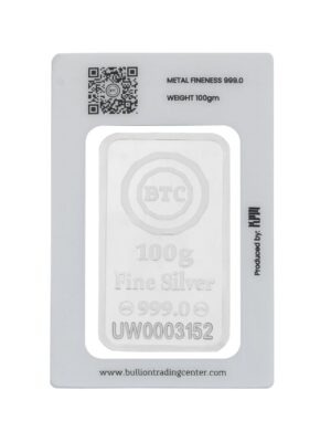 سبيكة فضة بي تي سي – 100 جرام (نقاء 999)